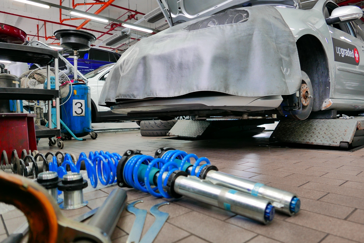 由於麗寶賽車場是多彎且上下坡的賽道,因此避震器是否能夠hold住整場成為關鍵;原廠避震依據駕駛經驗,覺得大約第三圈就力不從心,因此更換有紐伯林賽道經驗而開發的倍適登PSS B10以及Endless煞車來令片為R32更新底盤重要零件。